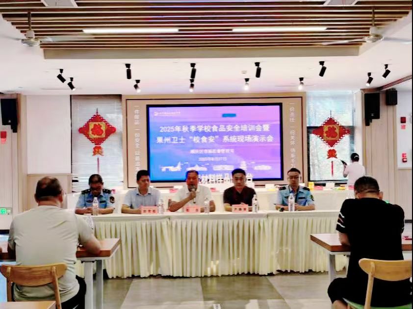 (金鑫.何星.刘作鹏)为进一步压实学校食品安全主体责任,提升校园食品安全管理精细化水平,筑牢师生饮食安全防线,8月27日下午,南充市顺庆区市场监督管理局在南高临江校区,组织荆溪、芦溪、金台片区11所学校开展食品安全专项培训,并同步举办果州卫士“校食安”系统现场演示会。各校食品安全总监、专职安全员及部分食堂从业人员共60余人参会,为新学期校园食品安全提前“充电赋能”。