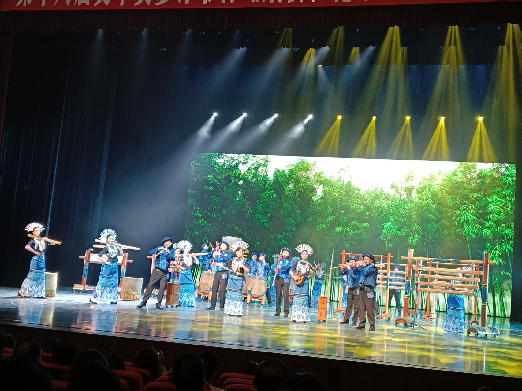当晚7时30分,演出在海南省民族歌舞团的民乐小合奏《竹木呈祥》中开启。该节目将舂米桶、猪槽等生活器具与钱铃、笮笆等原生乐器相融,用多元音色勾勒出黎族生活图景。