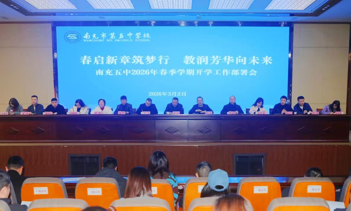 学校开学工作部署会圆满结束后,新学期安全工作专题会议暨2026年春季开学班主任工作会随即召开。会上,围绕春季校园安全隐患排查整治、学生心理健康教育、班级管理规范提升、德育工作提质增效等重点工作进行全面部署与深入研讨,进一步明确了班主任在校园安全教育、班级文化建设、学生习惯养成、家校协同育人等方面的核心职责与工作要求,为全体班主任明晰工作方向、压实工作责任,引导大家以坚守初心的担当、务实奋进的姿态,全力护航新学期各项工作平稳有序、高质量开展。春潮涌动风正劲,砥砺奋进新征程。此次春季开学工作会,既是新学期全面工作的“动员令”,更是推动学校高质量发展的“施工图”。南充五中全体教职工将以此次会议为新起点,春启新章、笃行不怠,教润芳华、逐光前行,以更坚定的信念、更务实的作风、更昂扬的干劲,凝心聚力、真抓实干,奋力谱写学校教育事业高质量发展的崭新篇章!