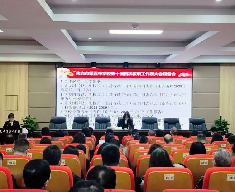 本网讯:(金鑫.樊正太)为进一步提升学校民主管理水平,凝聚全体教职工的智慧与力量,共绘高质量发展新蓝图,南充五中第十届教职工代表大会第四次会议于3月14日上午在育英校区隆重召开。