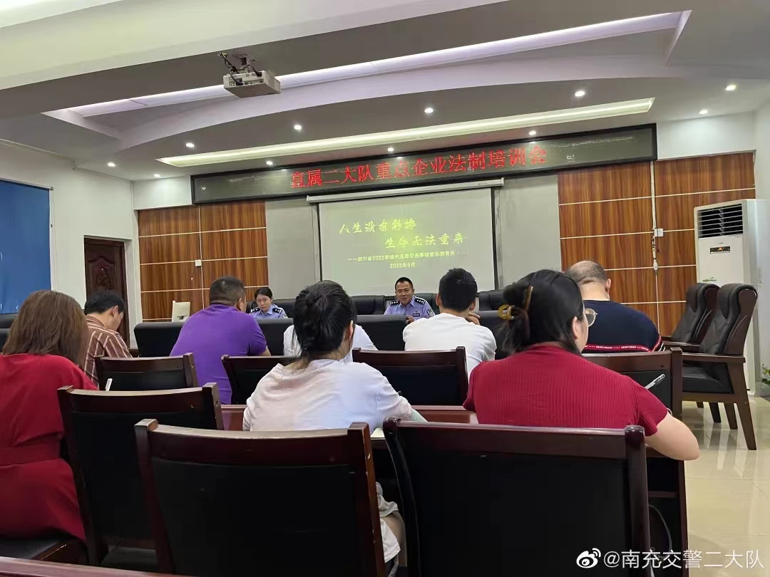 近日,南充公安交警直属二大队组织辖区重点企业开展“交通安全我先行”主体宣传活动及警示教育会。培训会上,大队民警通过播放近期典型交通事故案例,分析交通违法的危害及给社会带来的严重后果。提醒大家要时刻牢记遵守道路交通安全法律法规的重要性,时刻绷紧交通安全这根弦,以实际行动践行文明安全行车,做一名懂法、守法的驾驶员。