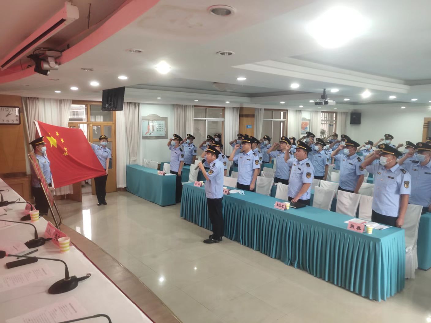 身着统一制式长裤、短袖衬衣,佩带制式凉帽的执法人员端坐在五楼会议室。13时58分,换装仪式正式开始。全体执法人员肃立,齐唱《国歌》。随后,局党组书记、局长何思明为领导班子成员逐一授帽,并带领与会执法人员面对国旗、高举右手进行庄严宣誓。我宣誓:“忠于中华人民共和国宪法,维护宪法权威,履行法定职责,忠于祖国、忠于人民、恪尽职守、廉洁奉公,接受人民监督,为建设富强民主文明和谐的社会主义现代化强国努力奋斗”。充分彰显了顺庆区市场监管干部时刻牢记职责使命,维护好市场主体和群众合法权益的决心,展现了顺庆市监人朝气蓬勃、积极向上的“精气神”。