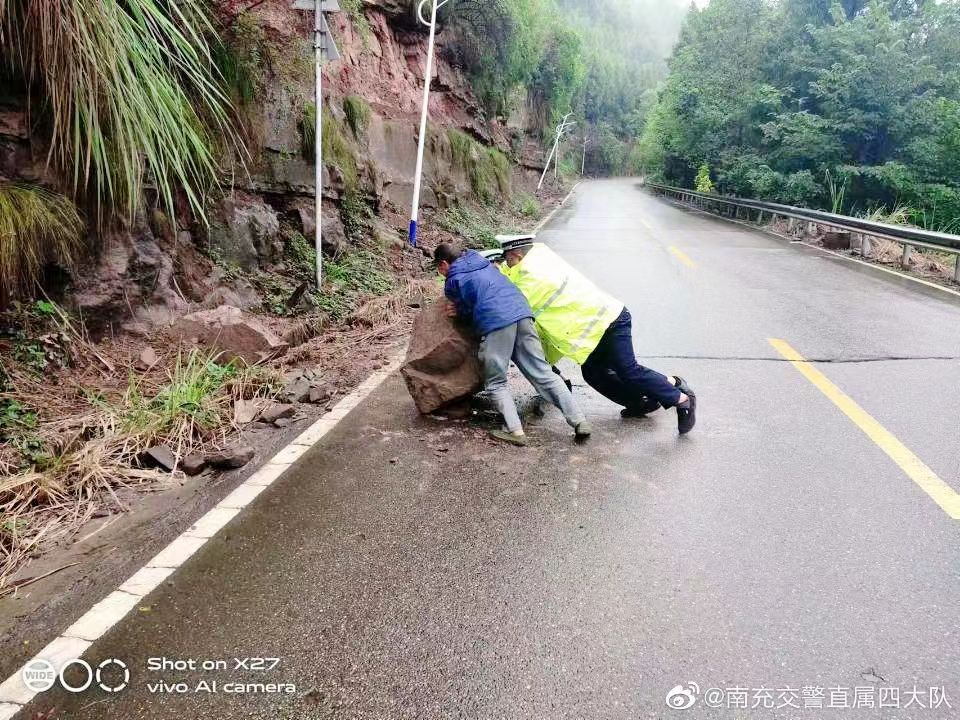 (金鑫.易佳.樊正太) 10月7日上午,南充交警直属四大队芦溪中队、交管办在路面开展交通隐患排查时,发现路面有落石,挡住了多半的道路,严重影响过往车辆正常通行和驾乘人员的安全。如不快速处置,容易引发道路交通事故。