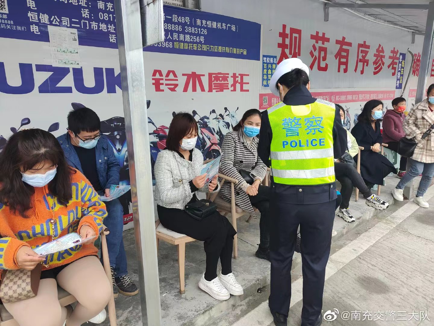 (金鑫.白雪靓.樊正太) 为进一步强化广大交通参与者的交通安全意识,从源头上遏制交通违法行为的发生,11月28日下午,南充交警三大队深入辖区兴鑫驾校,为新备考摩托车驾驶证的学员开展交通安全宣传活动。
