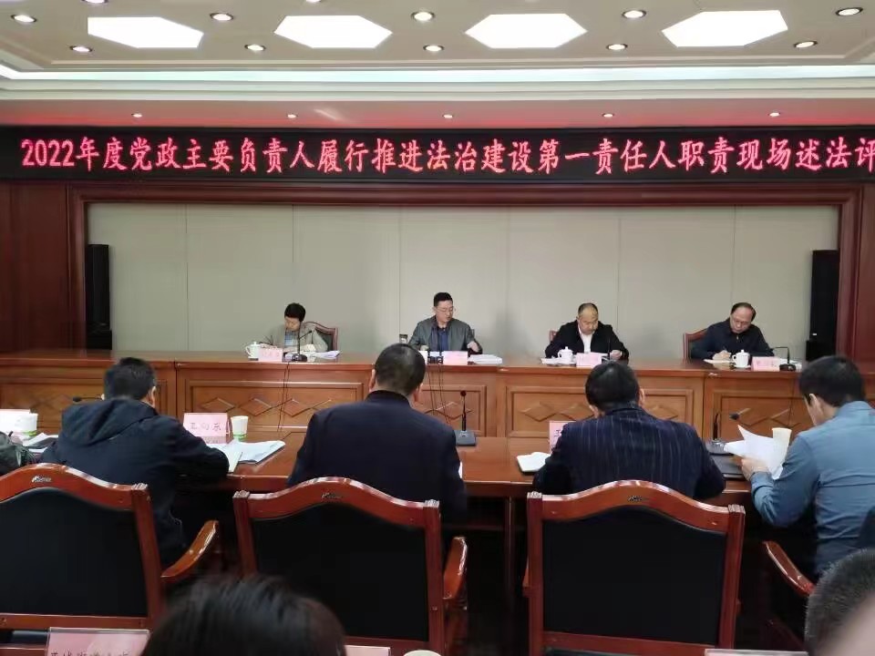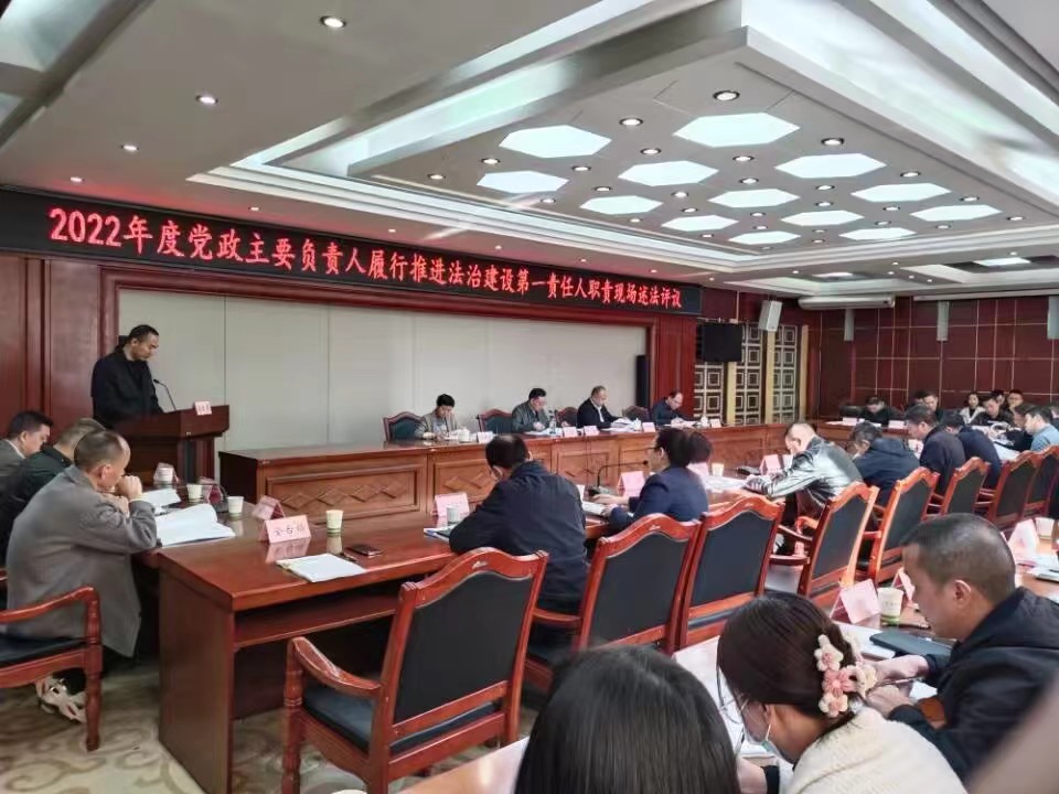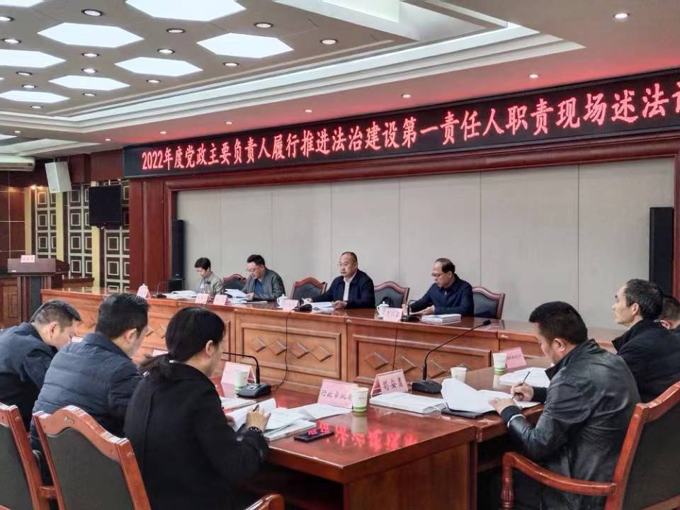 (金鑫.陈泓勋.樊正太) 3月15日,南充市顺庆区召开了2022年度党政主要负责人履行推进法制建设第一责任人职责现场述法评议会。区委常委、政法委书记杨蒈出席会议并讲话。