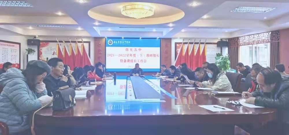(严明.朱心荣.樊正太)月25日,南充五中2021-2022学年度下期教研组暨集体备课组组长工作会在五中育英校区举行,会议由学校教师发展中心副主任魏建军主持,该校党总支书记、校长韦晗,副校长潘菊英、副书记陈洪出席了会议,南充五中的三个校区教研组长、备课组长、教务处及教师发展中心相关工作人员参加了会议。