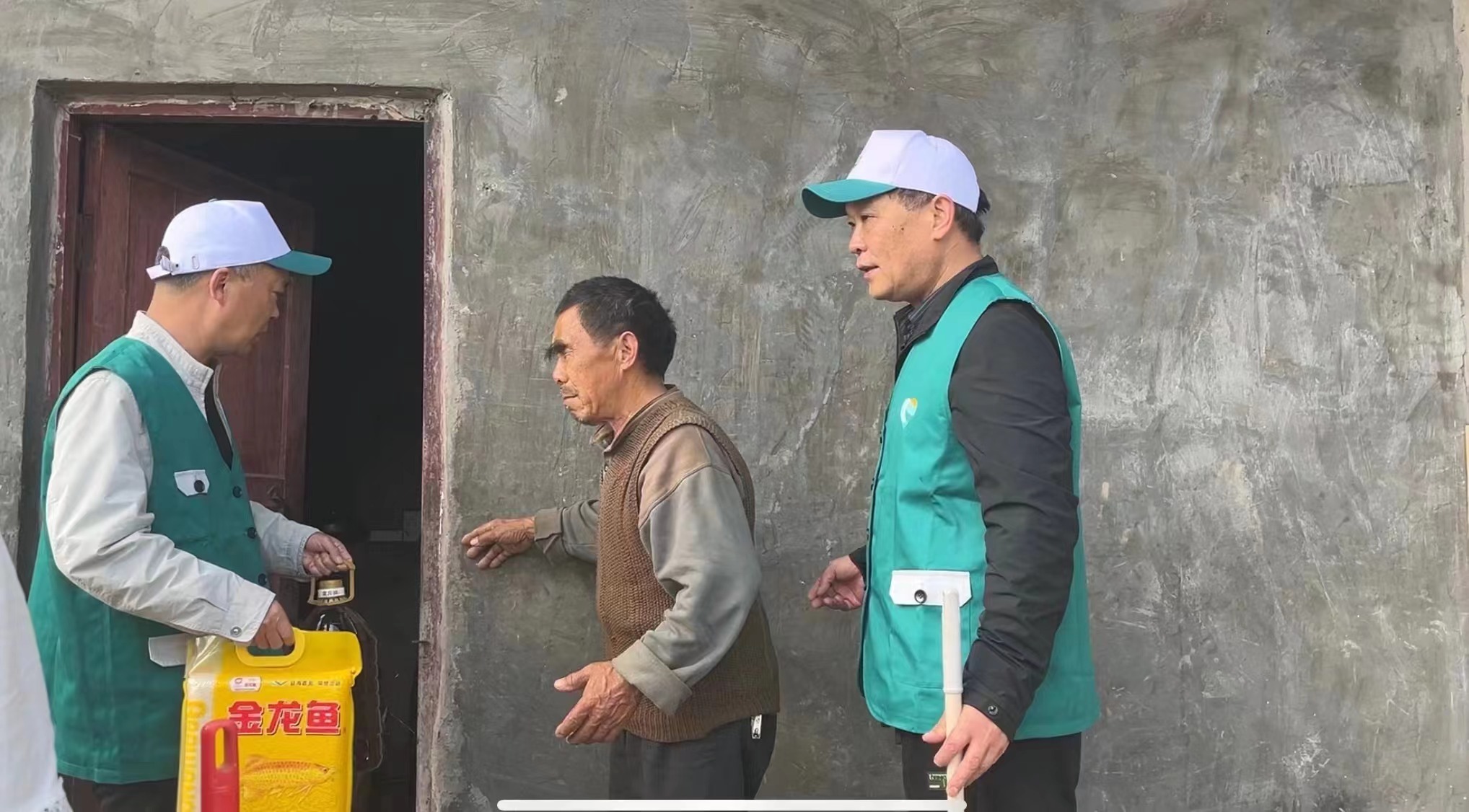 “谢谢你们来看我哟,我也没想到,我一个盲人也能靠自己的劳动兑换米和油……”志愿者帮助刺门村特困户李大爷在超市用积分兑换了米和油,并送到他的家里。