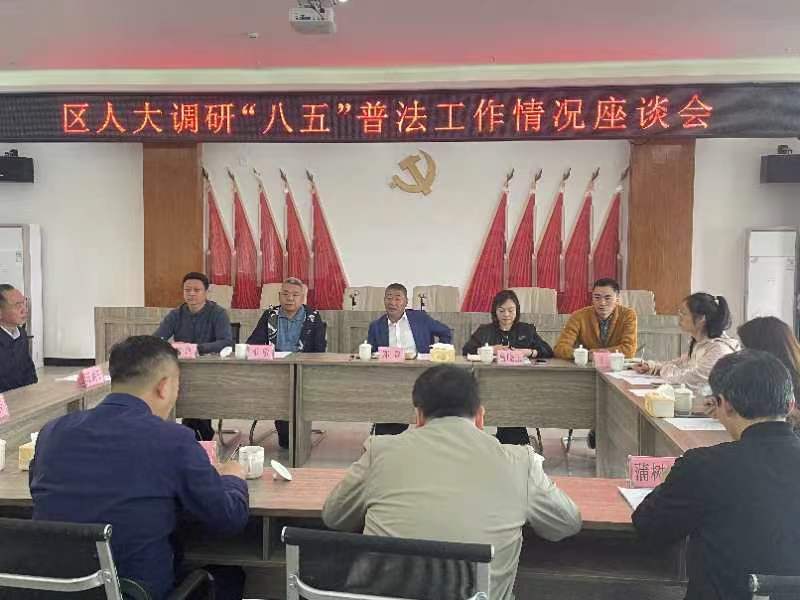 (金鑫.刘兰兰.樊正太) 4月8日上午,顺庆区人大常委会副主任邓登带领区人大法制委一行对该区“八五”普法工作情况开展专项调研。区司法局党组书记、局长蒙东,舞凤街道党工委书记吴华伟及相关负责人员陪同调研。