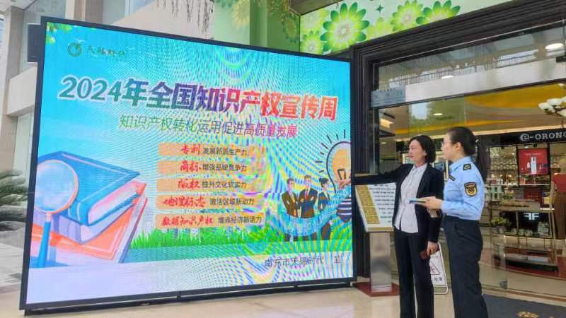 一是宣传知识产权主题宣传活动。工作人员向商场管理公司、品牌专卖店发放知识产权宣传资料,介绍2024年知识产权宣传周活动主题,活动时间,宣传重点等内容,引导商场人员主动参与知识产权宣传活动,争当知识产权宣传员。