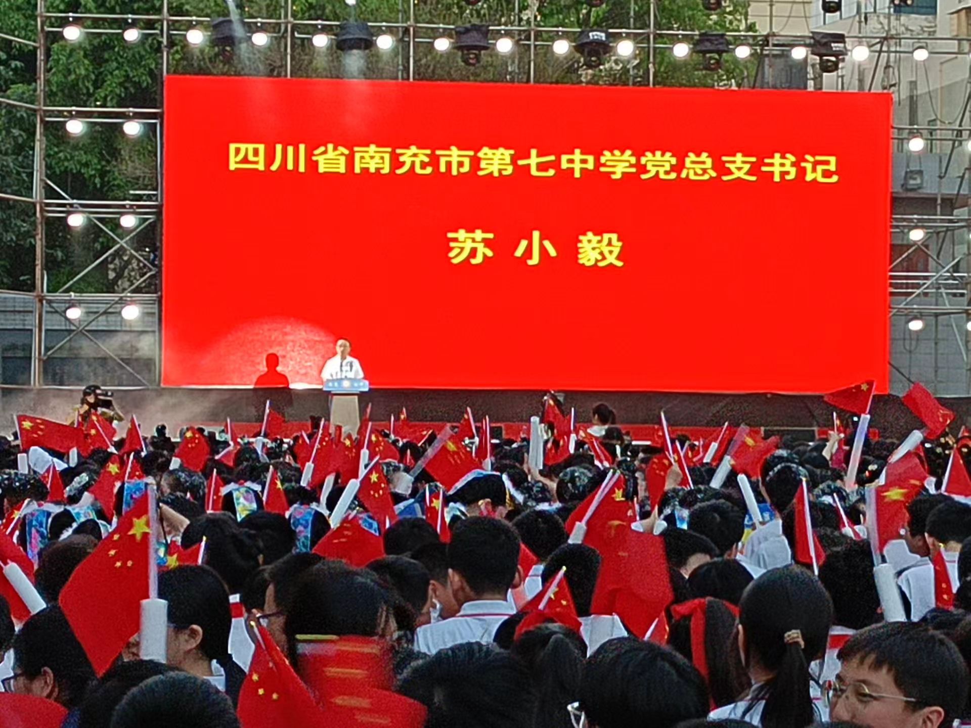 學校党总支书记苏小毅在致辞中讲到:今夜的七中华灯璀璨。南充七中全体师生和家长代表,汶川县绵虒中学、顺庆区搬罾中学和李家中学师生代表欢聚一堂,共同期待一场文艺盛宴上演。