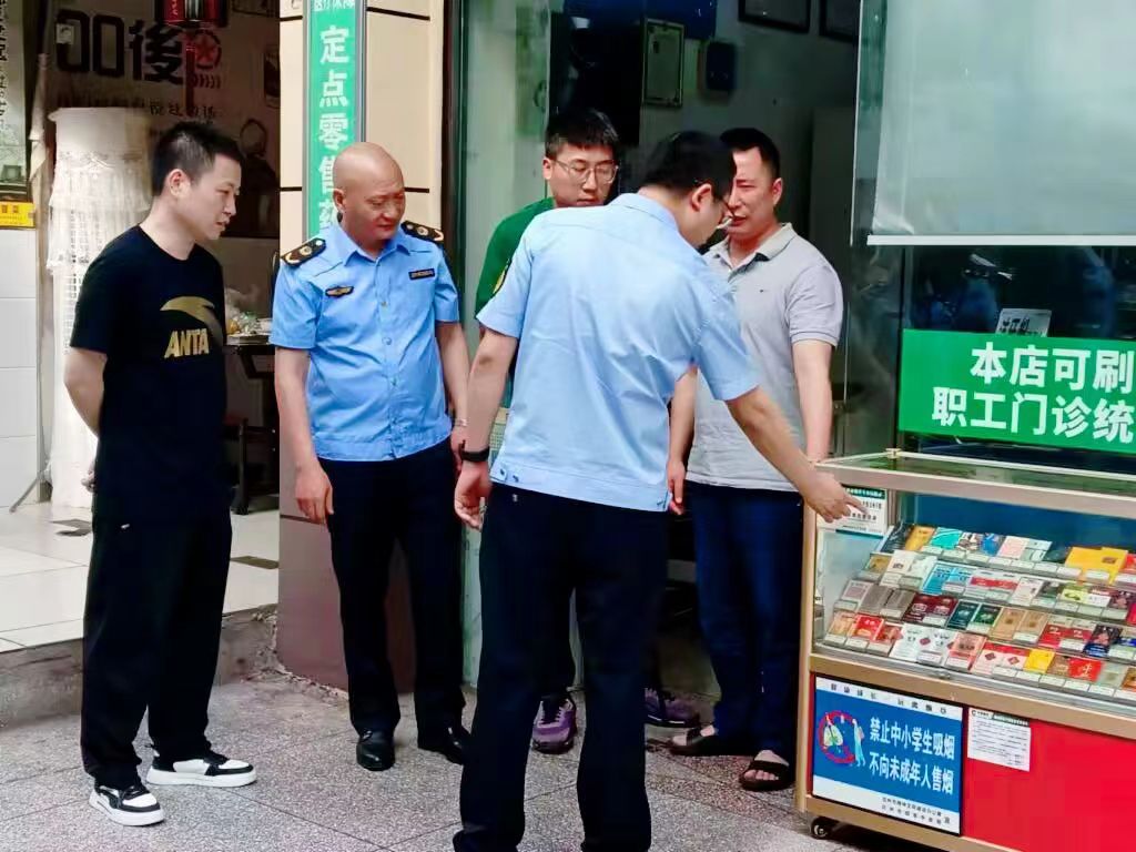 行动小组深入辖区学校周边的商超、副食店、餐饮店等经营场所,重点检查学校周边50米范围内的经营主体是否持有烟草专卖零售许可证,是否在店内显著位置张贴了“禁止中小学生吸烟和不向未成年人售烟酒”的宣传标语,以及是否存在向学生售烟,特别是“拆包售支”等违法违规行为。