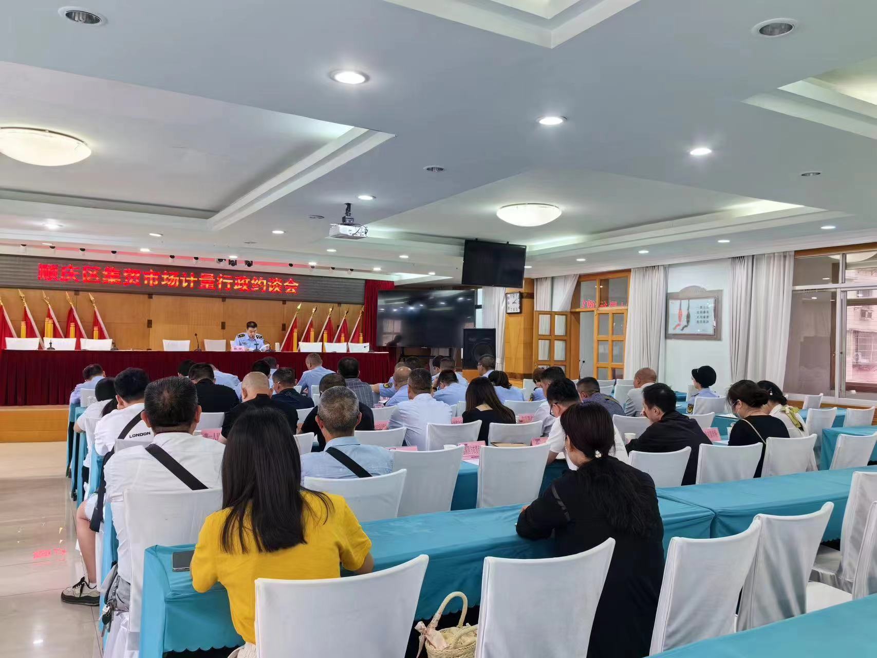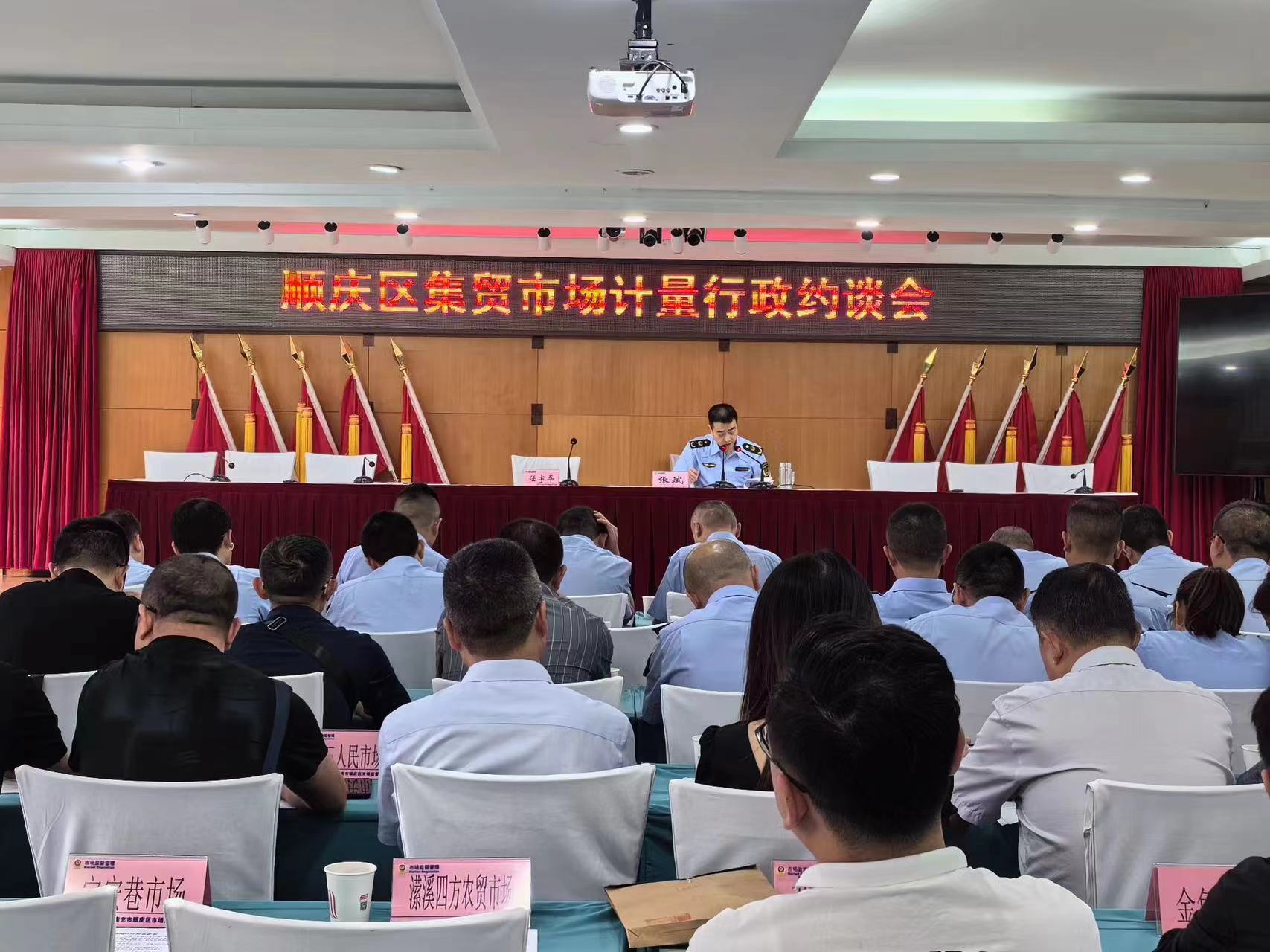 (金鑫.李劲.樊正太) 为督促经营者规范使用计量器具,进一步营造安全放心的消费环境,近日,顺庆区市场监督管理局组织召开了行政约谈会,各市场监管所所长、业务股室和顺庆区集贸市场主办方负责人共计40余人参会。