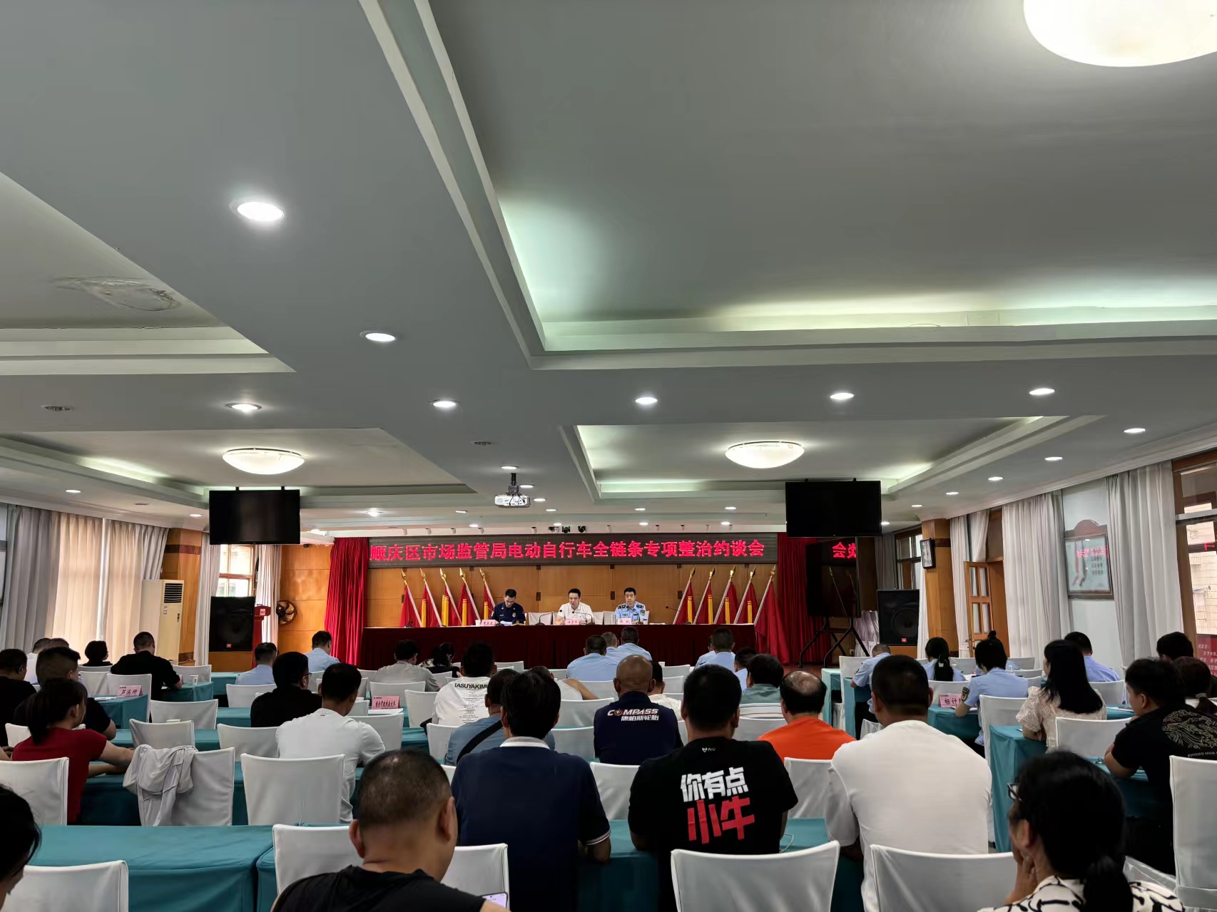 (金鑫.王孝一.樊正太)为全面加强市场监管领域电动自行车安全监管,切实保障人民群众生命财产安全,规范电动自行车行业经营行为,7月16日,南充市顺庆区市场监管局联合顺庆区消防救援局开展电动自行车全链条专项整治约谈会,全区77家电动自行车经营(维修)店参加了会議。