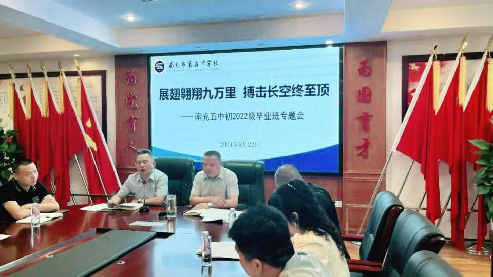 好风催帆进,奋斗正当时。为进一步扎实开展毕业班教学工作,激发拼搏斗志,赓续中考辉煌,9月22日上午,南充五中召开了初三毕业班工作会议。校级领导、包班行政干部、全体初三任课教师参加了会议,会议由育英校区教育处负责人任天勇主持。