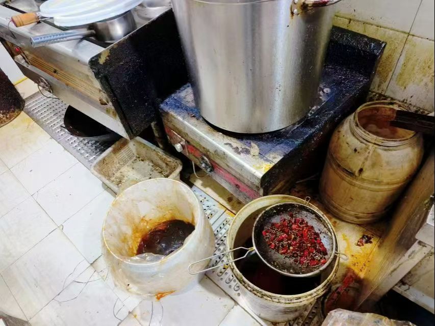 (金鑫.龙黎.樊正太) 12月3日,南充市顺庆区市场监管局根据群众举报线索,组织执法人员对某火锅店开展突击执法检查。执法人员进入该店后厨时,发现一个塑料桶,上面放有一个漏勺,桶内盛放有可疑油脂,该店现场无法出示其使用油脂的购进票据等资质。
