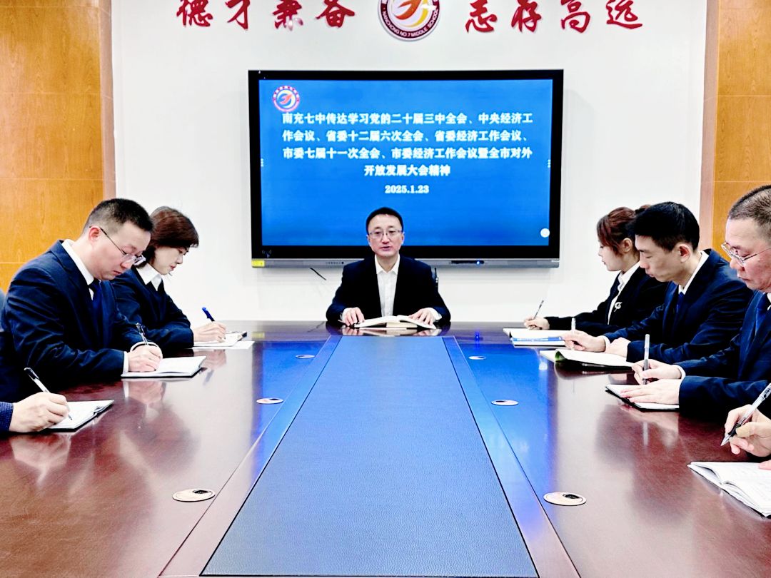 (金鑫.柴金华.樊正太)1月23日上午,南充七中在东校区六楼小会议室召开总支委(扩大)会议,传达学习中共南充市顺庆区委七届九次全会暨区委经济工作会议精神,并研究贯彻意见。会议由南充七中党总支书记苏小毅主持。会议指出: 此次会议是顺庆实施“1353”发展战略建设成渝地区双城经济圈高质量发展示范区攻坚之年召开的一次重要的会议,对进一步动员全区上下保持战略定力、勇于担当作为、奋力攻坚克难、确保“十四五”各项目标任务落到实处,具有重大而深远的意义,为顺庆区加快推动城乡融合发展指明了方向、提供了遵循。