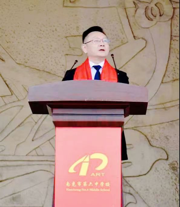 庄严的升旗仪式后,南充六中党委书记罗斌发表了题为《百日竞渡·金榜梦圆》的致辞。他回顾学子们三年来的成长足迹,勉励大家以信念为帆、拼搏为桨、坚韧为盾,在百日冲刺中“锚定目标不放松,分秒必争创奇迹”。