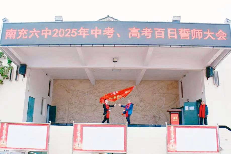(金鑫.朱骏.樊正太) 3月3日下午,南充六中操场上旌旗飘扬、战鼓擂动,2025年中考、高考百日誓师大会在此隆重举行。全校2000余名师生和家长代表齐聚一堂,以“奋战百日·青春无悔·携手逐梦·共创辉煌”为主题,为即将踏上考场的初三、高三学子擂响冲刺的战鼓,凝聚拼搏的力量。