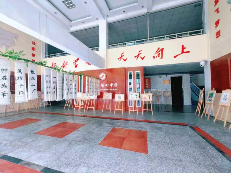 随后,调研组实地查看了“阳光体育两小时”活动的落实情况,参观了"五育融合" 成果展示区。在展示区,调研组观看了学生美术创作、书法艺术及学科实践作业等多元成果,深入了解学校以文化育人、以艺术润心的校园文化建设成效。