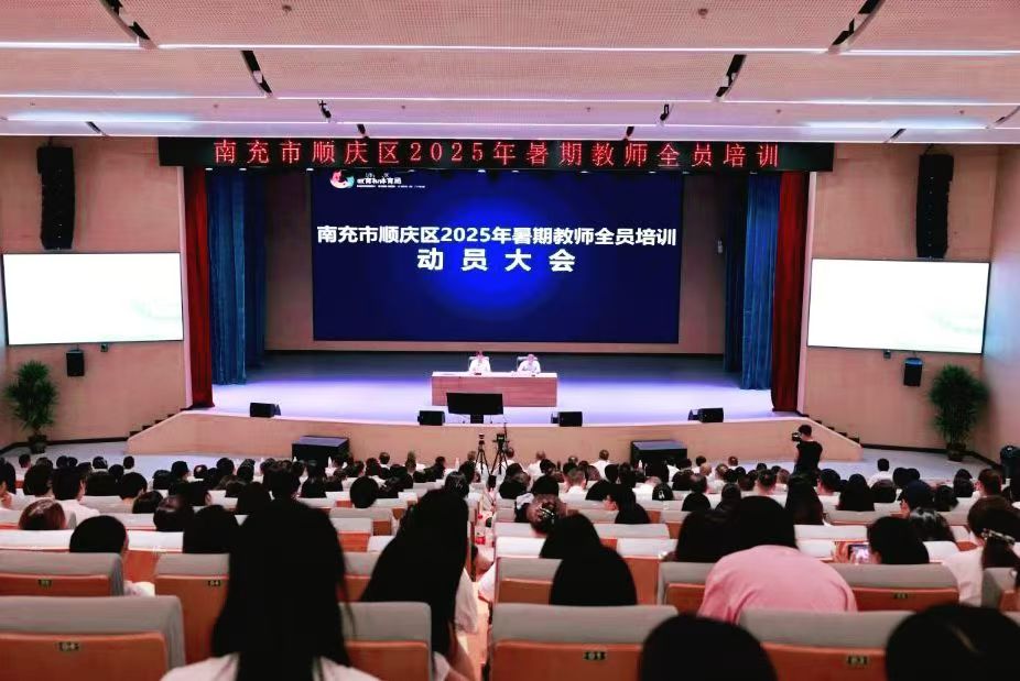 (金鑫.罗苓书.樊正太) 7月4日上午,南充市顺庆区2025年暑期教师全员培训动员大会在五星小学将军校区举行。顺庆区委教育工委书记,区教体局党组书记、局长何阔出席会议并讲话。顺庆区委教育工委副书记、区教体局党组成员张忠祥主持会议。