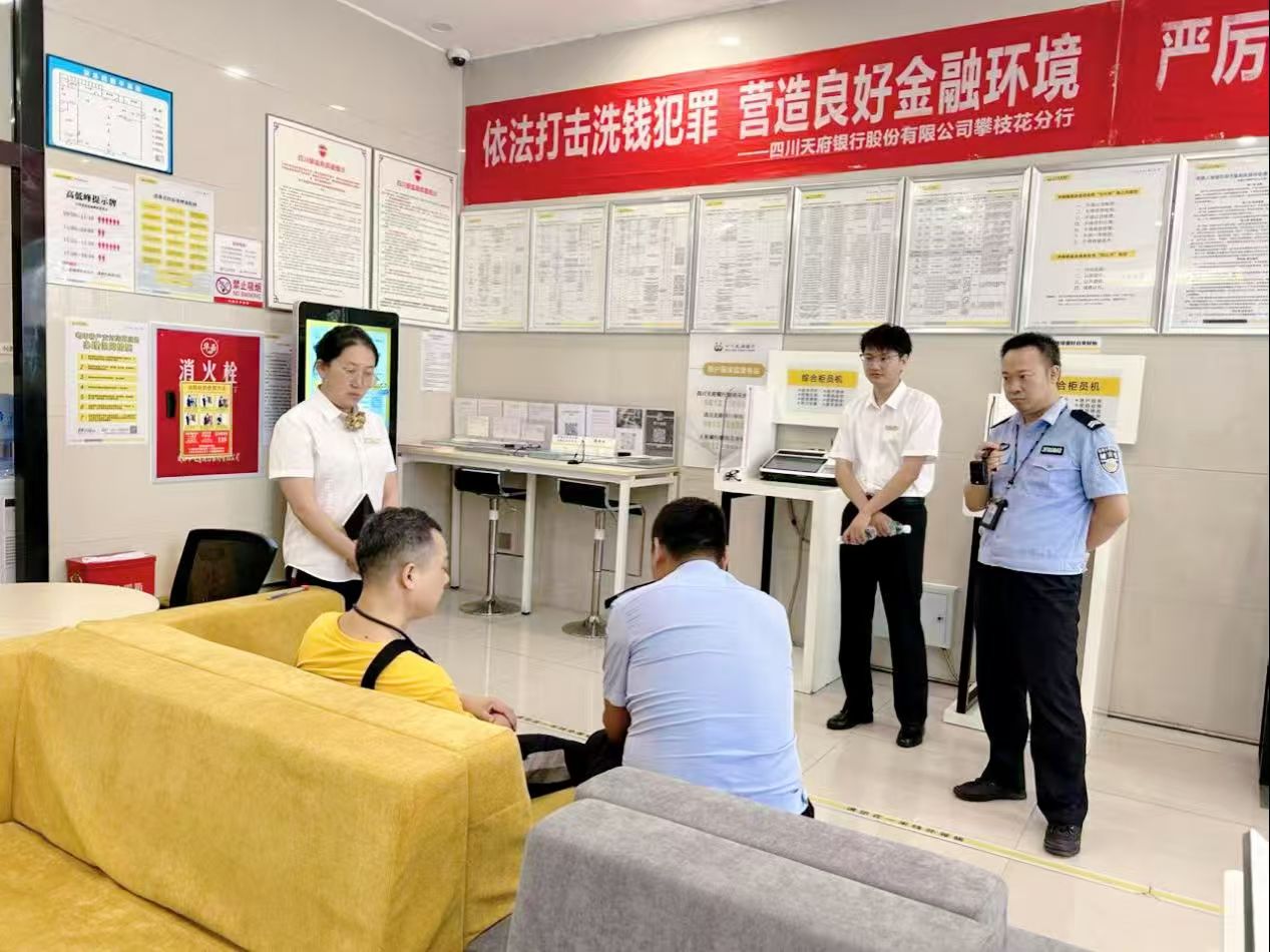 面对客户半信半疑,支行果断联动攀枝花市东区反诈中心,同步联系就近派出所,民警到店后,通过反诈教育、剖析同类案例,让客户认清骗局本质,避免陷入诈骗陷阱。
