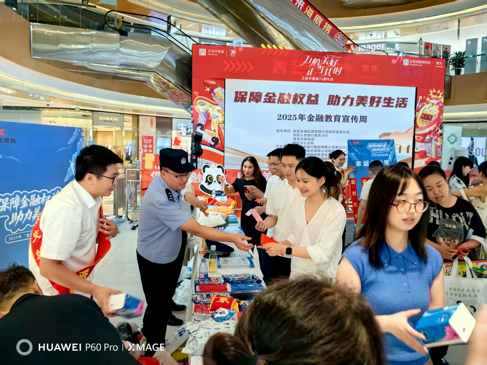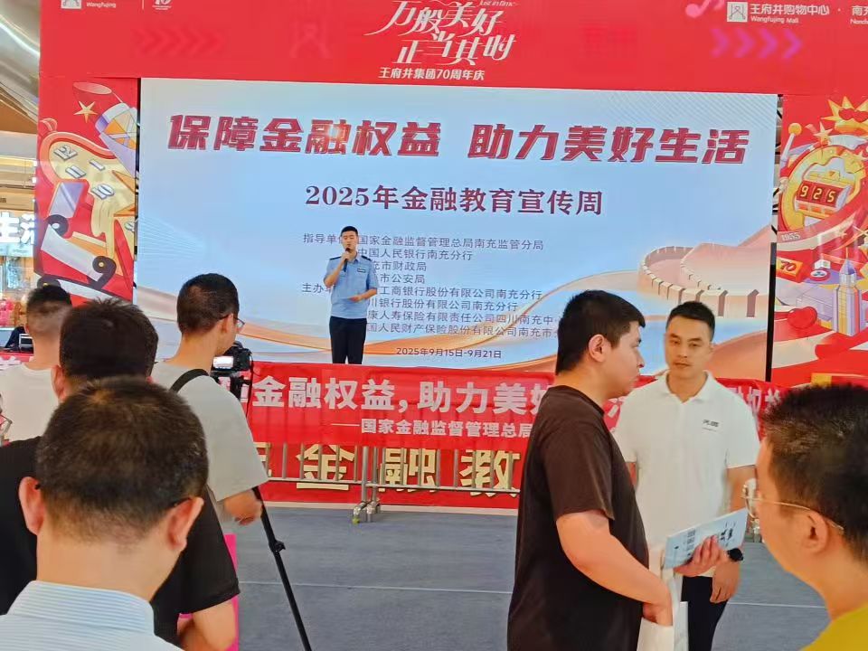 (金鑫.樊正太文/图) 为全面贯彻落实党的二十大和二十届二中、三中全会精神以及中央经济工作会议、中央金融工作会议部署,深入践行金融工作政治性、人民性,持续提升公众金融素养和风险防范能力,维护金融消费者和投资者合法权益,9月17日下午,由国家金融监督管理总局南充监管分局,中国人民银行南充分行,南充市财政局,南充市公安局指导,中国工商银行股份有限公司南充分行,四川银行股份有限公司南充分行,泰康人寿保险有限责任公司四川南充中心支公司,中国人民财产保险股份有限公司南充市分公司等多家机构联合主办的2025年“保障金融权益.助力美好生活”的金融教育宣传周在南充高坪王府井购物大厅隆重啓幕。
