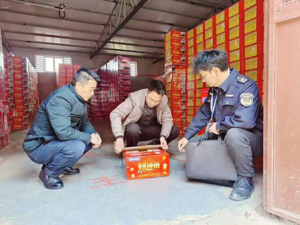 执法人员逐一核查销售单位是否持有有效营业执照和烟花爆竹经营(零售)许可证,是否严格落实进货查验、索证索票制度;同时,仔细检查在售烟花爆竹是否具备完整的产品合格证、厂名厂址、燃放说明、警示语及生产日期等法定标识,严查“三无”产品、过期产品以及不符合国家强制性标准的劣质烟花爆竹,同时督促销售单位严格落实烟花爆竹质量安全主体责任,强化风险隐患自查自纠,确保从源头杜绝安全事故发生。对检查中发现一批名为《宝石流星》的吐珠类烟花引火线引燃时间涉嫌存在质量不合格问题,执法人员现场记录并开展调查。